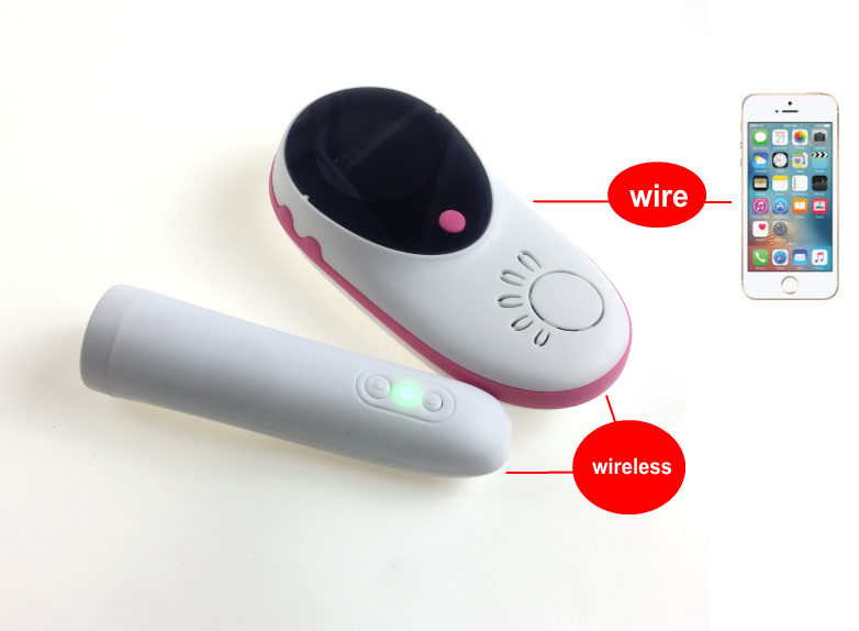 Sonotech 5W is not wirless fetal doppler,  probe only is the wireless and send the detected FHR to the main device , and the  main device can be connect with smart device by specical cable "not wireless "
