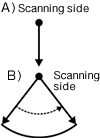 ![]() A) The measurement of distance. B) B mode scanning by mechanical rotation. |