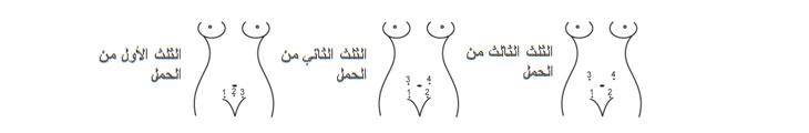 الأسبوع 16 - 24 (الثلث الأول من الحمل) : المكان الأفضل للوصول لنبض الجنين هو في الوسط تحت سرة البطن يميناً أو بالقرب منها