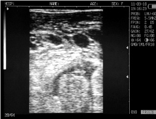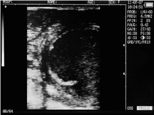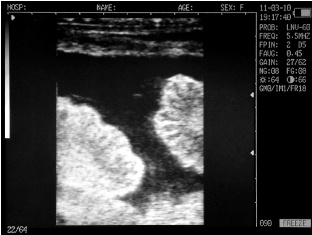 Ultrasound images of cows reproductive system, generated by a scanner Sonovet with rectal linear transducer.